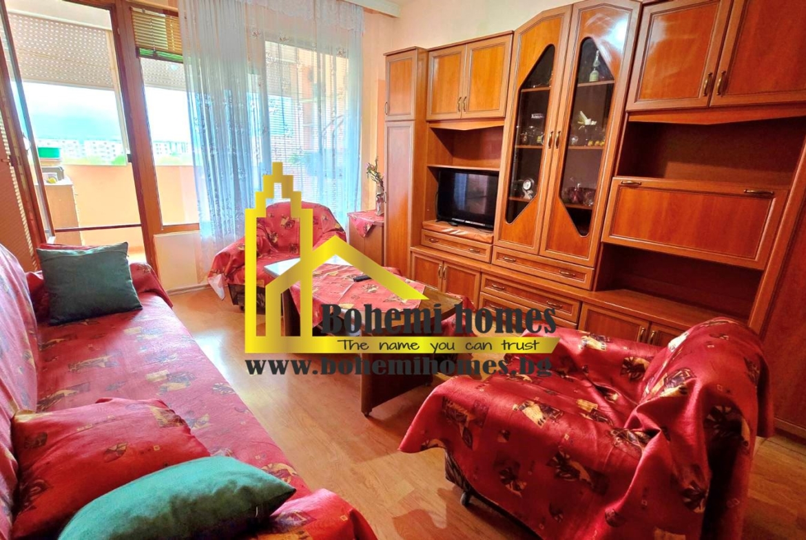 (ОФЕРТА № 2030) БОХЕМИ ХОУМС – НЕДВИЖИМИ ИМОТИ ПЛОВДИВ има удоволствието да Ви представи за продажба просторен и функционален двустаен апартамент с обща площ, разпределена между три помещения,голяма южна тераса и допълнителни удобства.